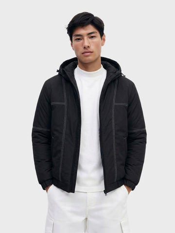 Men's Black Relaxed Fit Textured Retro Jacket