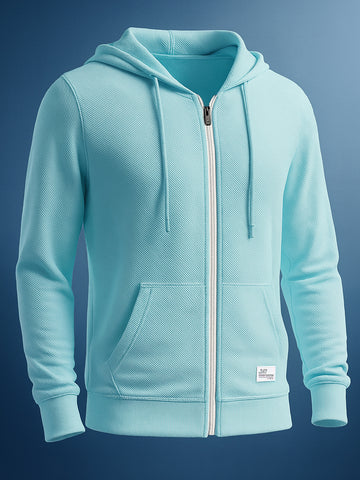 Men's Aqua Regular Fit Textured Casual Sweat Shirt