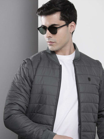 Men's Dark Grey Slim Fit Solid Casual Jackets(Syn)
