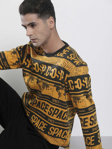 Men's Mustard Regular Fit Typographic Printed Athletic Sweat Shirt