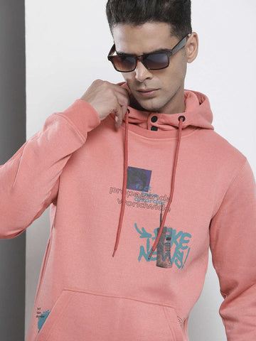 Men's Dusty Pink Regular Fit Printed Street Wear Sweat Shirt