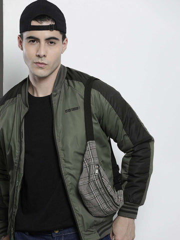 Men's Olive Green Slim Fit Printed Casual Jackets