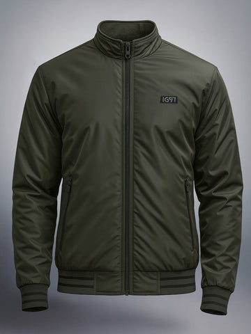 Men's Olive Slim Fit Solid Casual Winter Jacket