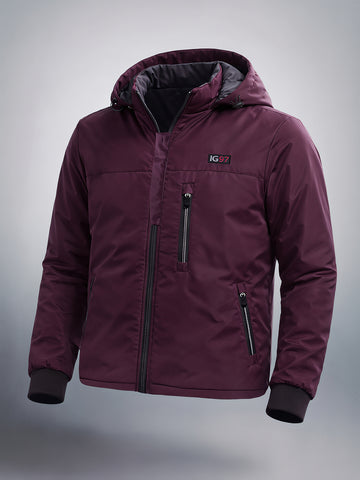 Men's Wine Red Slim Fit Solid Casual Jackets