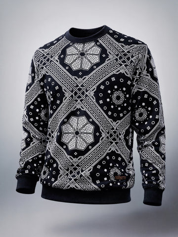 Men's Black Regular Fit Printed Casual Sweat Shirt