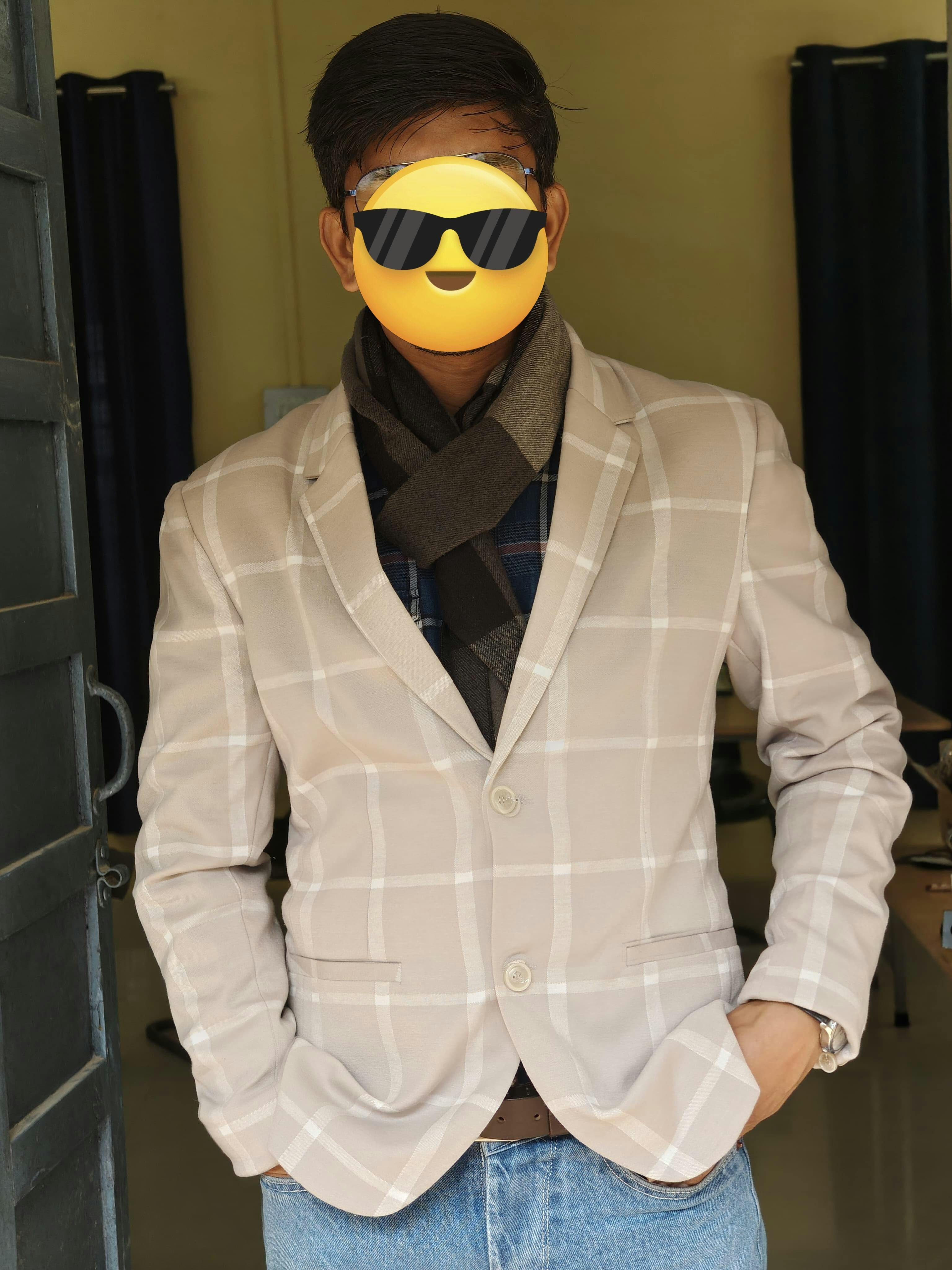 Men's Beige Regular Fit Checked Casual Blazer