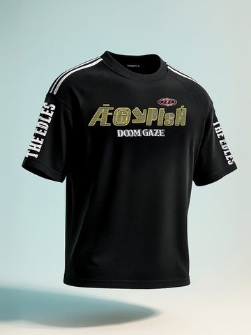 Men's Black Relaxed Fit Graphic Printed 240 GSM Street Wear T-Shirt