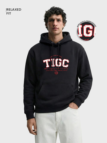 Men's Black Relaxed Fit Varsity Casual Sweatshirt