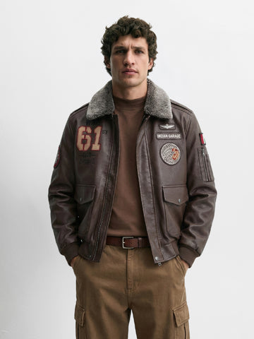 Men's Brown Regular Fit Embroided Casual Bomber Jacket