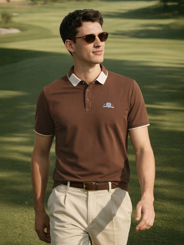 Men's Brown Regular Fit Embroidered Casual T-Shirts