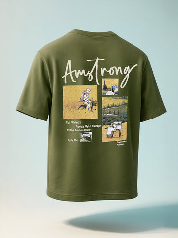 Men's Green Relaxed Fit Embroided 240 GSM Casual T-Shirt