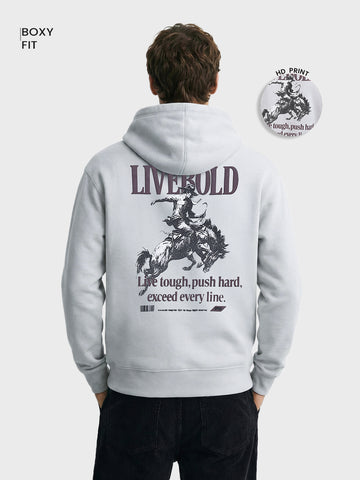 Men's Grey Boxy Fit Graphic Printed Casual Sweatshirt