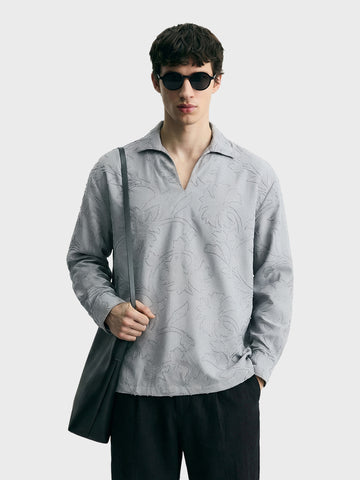 Men's Grey Relaxed Fit Textured Casual Shirt