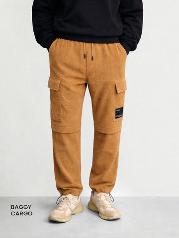 Men's Khaki Baggy Fit Textured Utility Cargo