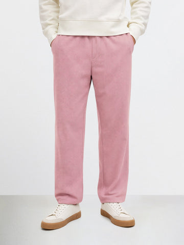 Men's Pink Relaxed Fit Textured Utility Trousers