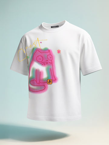 Men's White Relaxed Fit Embroided 240 GSM Casual T-Shirt