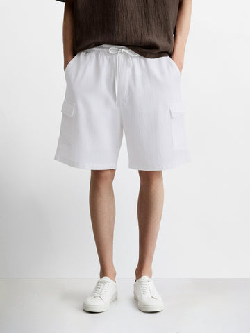 Men's White Relaxed Fit Solid Resort Wear Shorts