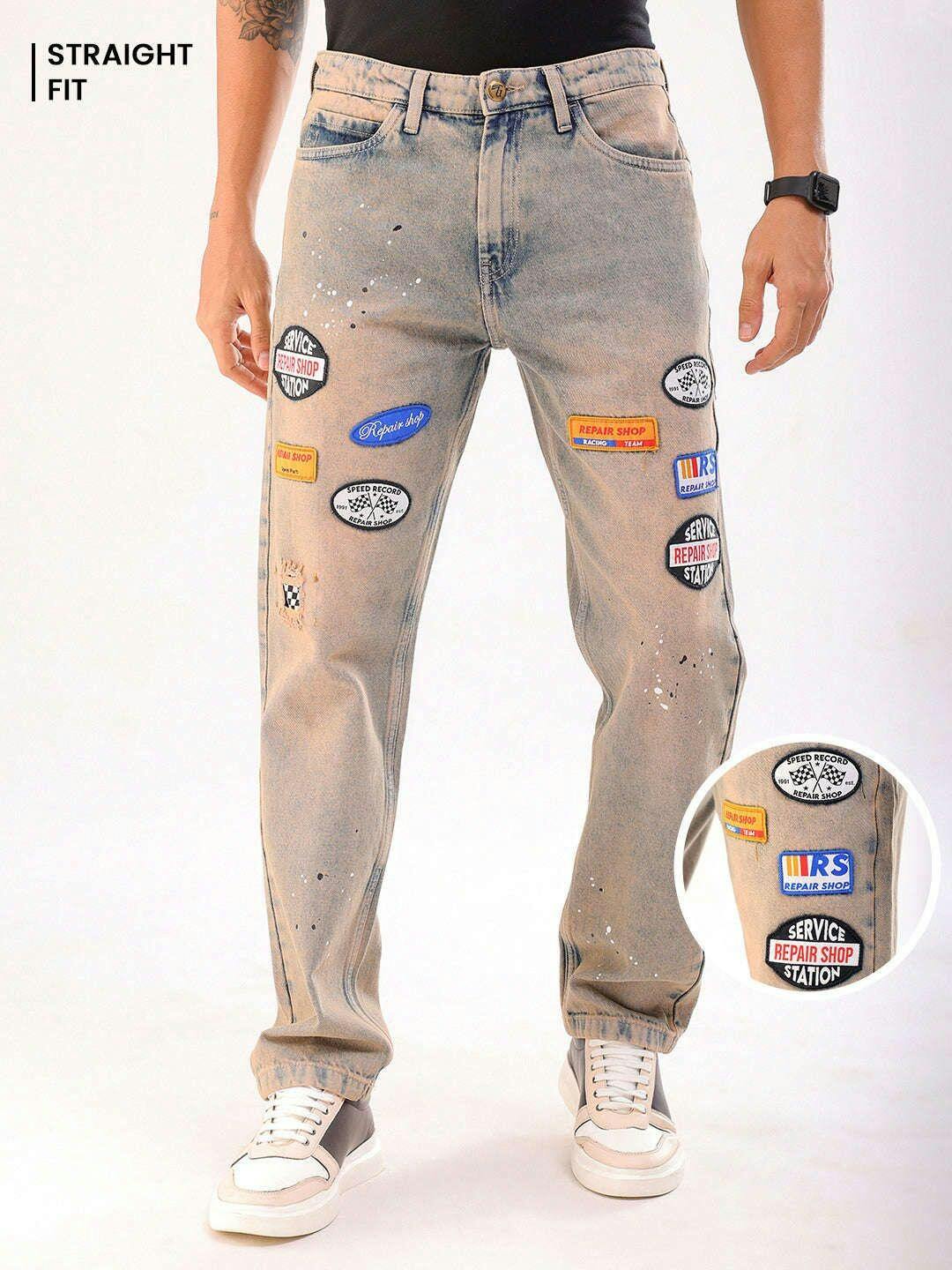 Men's Mud Blue Regular Fit Paint Splash Vintage Jeans