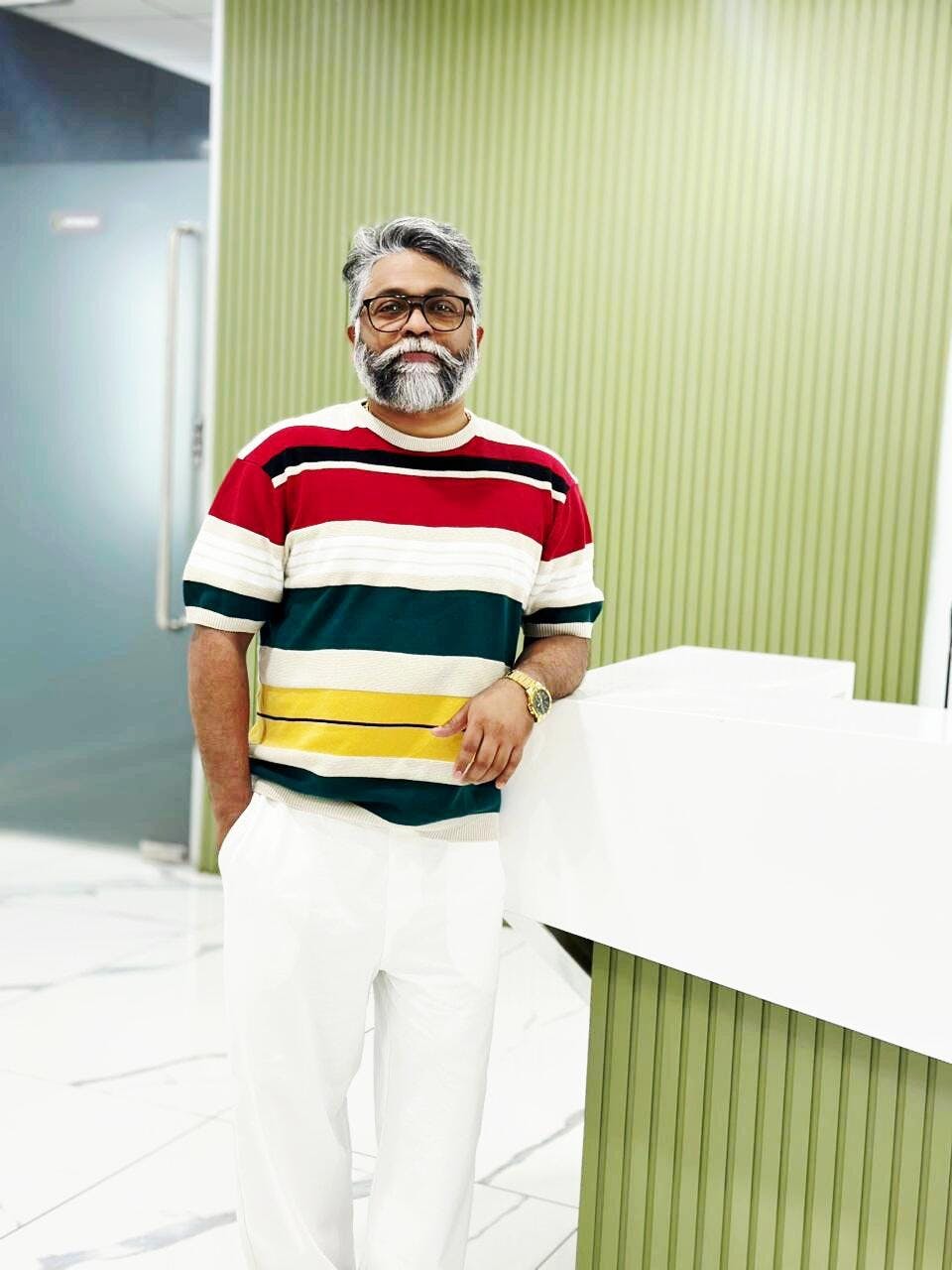 Men's Multicolor Oversized Fit Striped Flat Knit Polo Collar T-Shirt