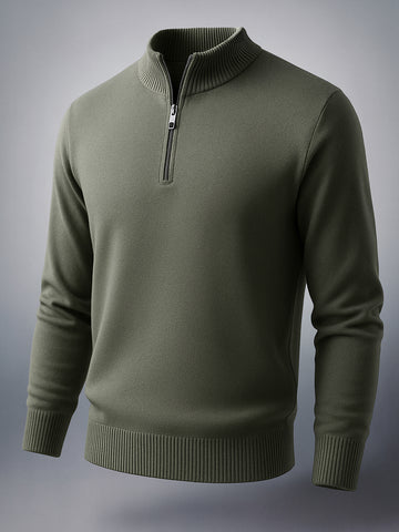 Men's Olive Relaxed Fit Solid High Neck Sweater