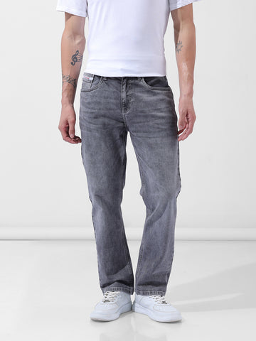 Men's Grey Regular Fit Solid Casual Jeans